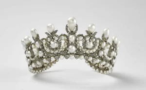 – Coroa cravejada com safiras e quase 2 mil diamantes;