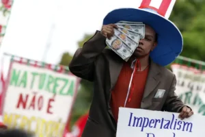 O ato contou com manifestantes de diferentes organizações internacionais. Kwami Kpondzo, de Togo, na África, veio como representante da Global Forest Coalition, e defendeu a união de todos os movimentos populares como forma de lidar com os problemas ambientais globais.