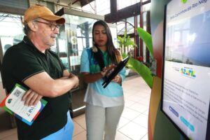 José Airton, 30 anos, esposo de Porteis, complementou: “Usei o totem digital para checar roteiros e transporte para o Parque Linear da Nova Doca. Foi simples e eficiente. A iniciativa me deu segurança para a gente explorar a cidade. Acho que essa rede de informações é fantástica para a COP 30.”