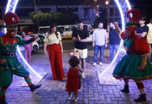 O prefeito de Belém, Igor Normando, acompanhado da primeira-dama, Fabíola Normando, e da filha do casal, a pequena Isabela, inaugurou oficialmente a iluminação especial de Natal no Parque Linear da Doca, dando início ao Especial de Natal da Prefeitura, considerado o maior e mais estruturado já realizado na capital paraense.