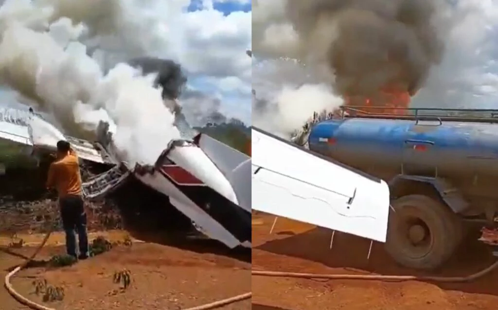 Avião com políticos faz pouso forçado e pega fogo em Rondônia