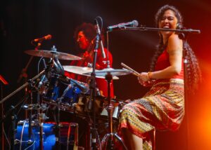 E foi aí que percebi o poder que tem a representatividade de uma mulher estar tocando bateria e cantando. Isso não é importante só para mim, mas para muitas mulheres e até crianças, que podem ver isso e pensar numa perspectiva de vida diferente, sabe?