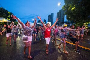 Rayssa Leite, 18 anos, moradora da Sacramenta, destacou a pluralidade musical no CarnaBelém. “A mistura de ritmos daqui é sensacional. Tem música para todo mundo dançar. Quando começou a chover, achei que o pessoal ia embora, mas foi o contrário: todo mundo ficou e curtiu ainda mais.”