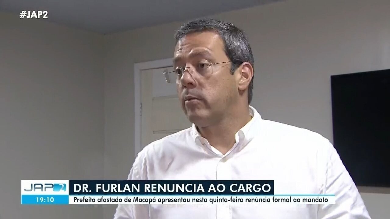 O prefeito de Macapá, Dr. Furlan (PSD), apresentou pedido forma de renúncia ao mandato, após ter sido afastado do cargo por decisão do ministro do Supremo Tribunal Federal (STF), Flávio Dino. A Polícia Federal (PF) está investigando Dr. Furlan e o vice-prefeito, Mario Neto, por suspeita de desvio de recursos federais destinados à construção do Hospital Geral Municipal.