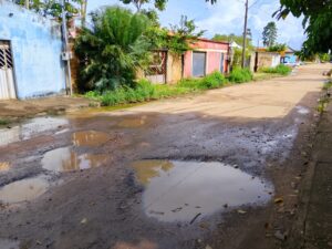 Lamaçal por todos os quatro cantos do residencial, nem se fala. Com a intensidade das chuvas de inverno pesado, e a falta de manutenção pelas ruas e travessas, as buraqueiras e crateras imperam. Com isso, a água pluvial vai se transformando em verdadeiros piscinões. Mosquitos transmissores da dengue agradecem.