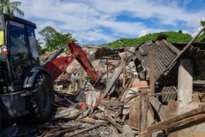 Enquanto a demolição avançava, outra frente de trabalho seguia ativa nas proximidades do canal. Equipes montaram uma força-tarefa para a limpeza de um lixão irregular de grandes proporções. A ação ocorreu ao longo da última semana, com retirada contínua de resíduos, como parte das medidas para reduzir os impactos das chuvas.